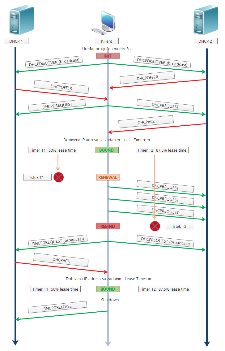 Svrha DHCP servera je da automatiziranom dodjelom adresa na mreži olakša i pojednostavi njenu administraciju. U tom procesu klijent i server razmjenjuju niz različitih poruka.