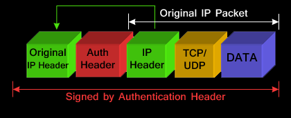 The packet diagram below illustrates IPSec Tunnel mode with AH header: