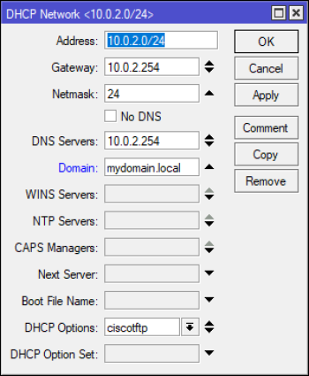 How to configure Mikrotik DHCP Server for Cisco Phone TFTP option