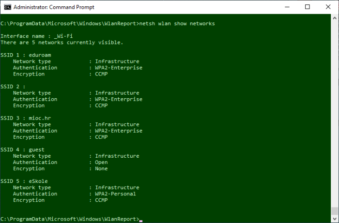 Once you complete the steps, the command will output currently visible networks at your location.