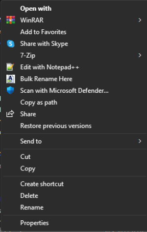 When you open windows explorer in windows 11 and right click on file, a new context menu will display. It looks like this: