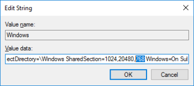 Edit the Value data to change the third “SharedSection” value only. Do not modify any other values.